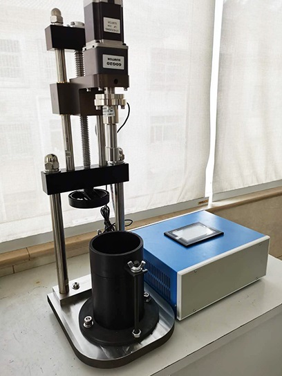 3、在將容器放置在機(jī)架上,調(diào)整十字板中心,旋轉(zhuǎn)手柄,使得十字板插入土樣。