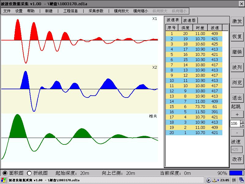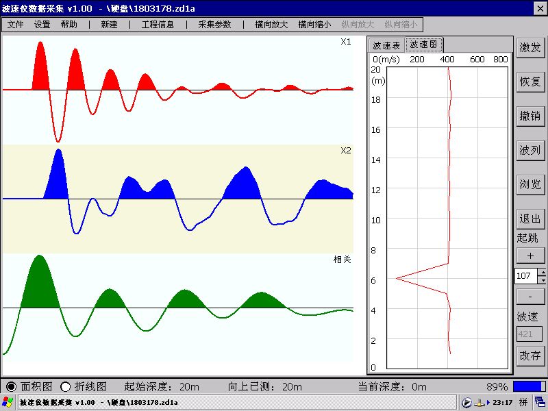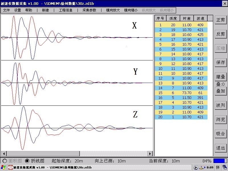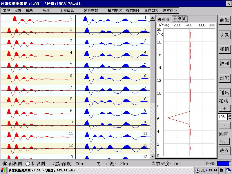ZD18綜合式波速測試儀是一套四通道高分辨率、數(shù)字化的波速測試儀器,具有分時采樣,迭加、濾波、信號增強、抑制噪聲以及現(xiàn)場實時計算、顯示實測波形和測試結果等功能。
