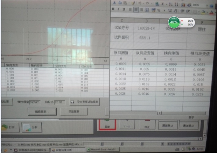 4、軟件自動計(jì)算彈性模量及泊松比,直接出具報(bào)告(多種方法自動識別),導(dǎo)出報(bào)告為EXCEL格式,公式及數(shù)據(jù)具備獨(dú)立調(diào)整功能。