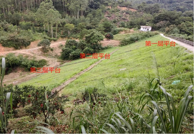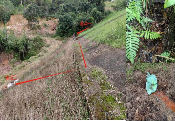第三層共有兩個滲水點,滲點一于第二層平臺和第三層平臺之間的邊坡處,滲點二位于第三層平臺以下邊坡某處,第三層平臺整體長度50m左右。