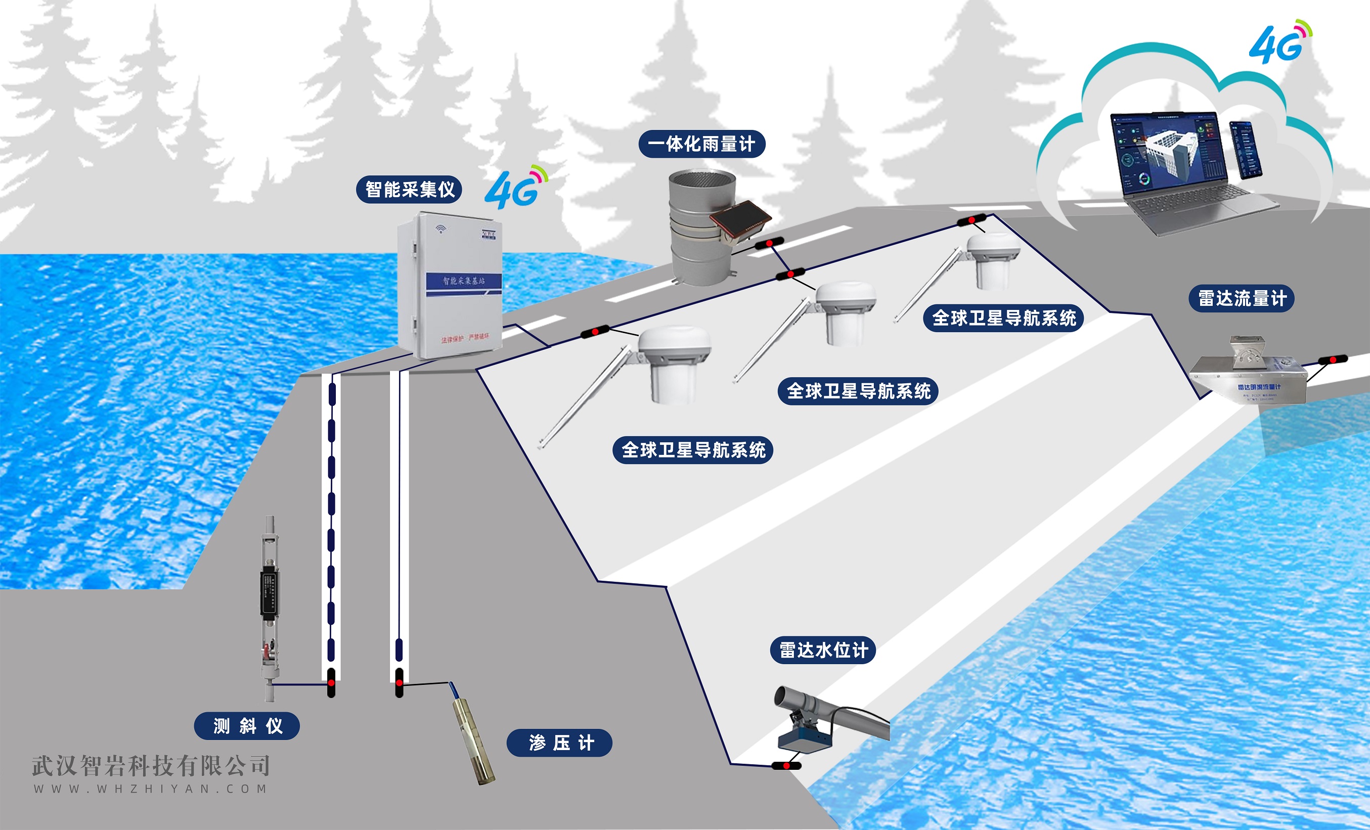 水庫大壩安全監(jiān)測系統(tǒng)是應用于大壩在建期及運營期過程中,針對大壩水雨情、結構安 全等系統(tǒng)進行實時監(jiān)測。系統(tǒng)采用無線自動組網(wǎng)、定期連續(xù)采樣,實時數(shù)據(jù)上傳與數(shù)據(jù)處理實 時了解大壩的健康狀態(tài),幫助檢測人員快速定位大壩主要危險源,及時對大壩安全性作出準確評估,預防事故的發(fā)生,避免人員傷亡,減輕經(jīng)濟損失。