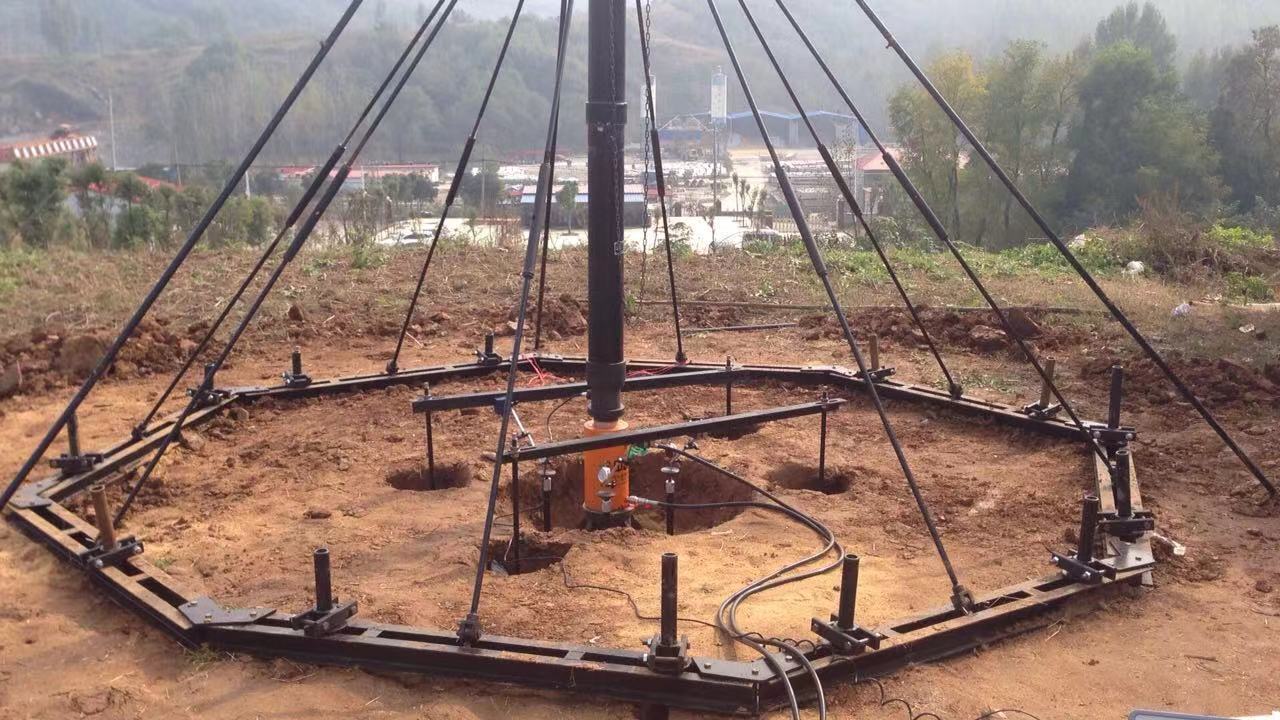 2、傘形架采用8根順逆調(diào)節(jié)拉桿,8條橫梁,16只反力地錨和反力架頂?shù)龋ㄟ^活絡(luò)節(jié)連串成整體。
