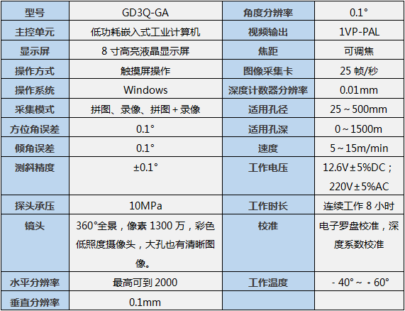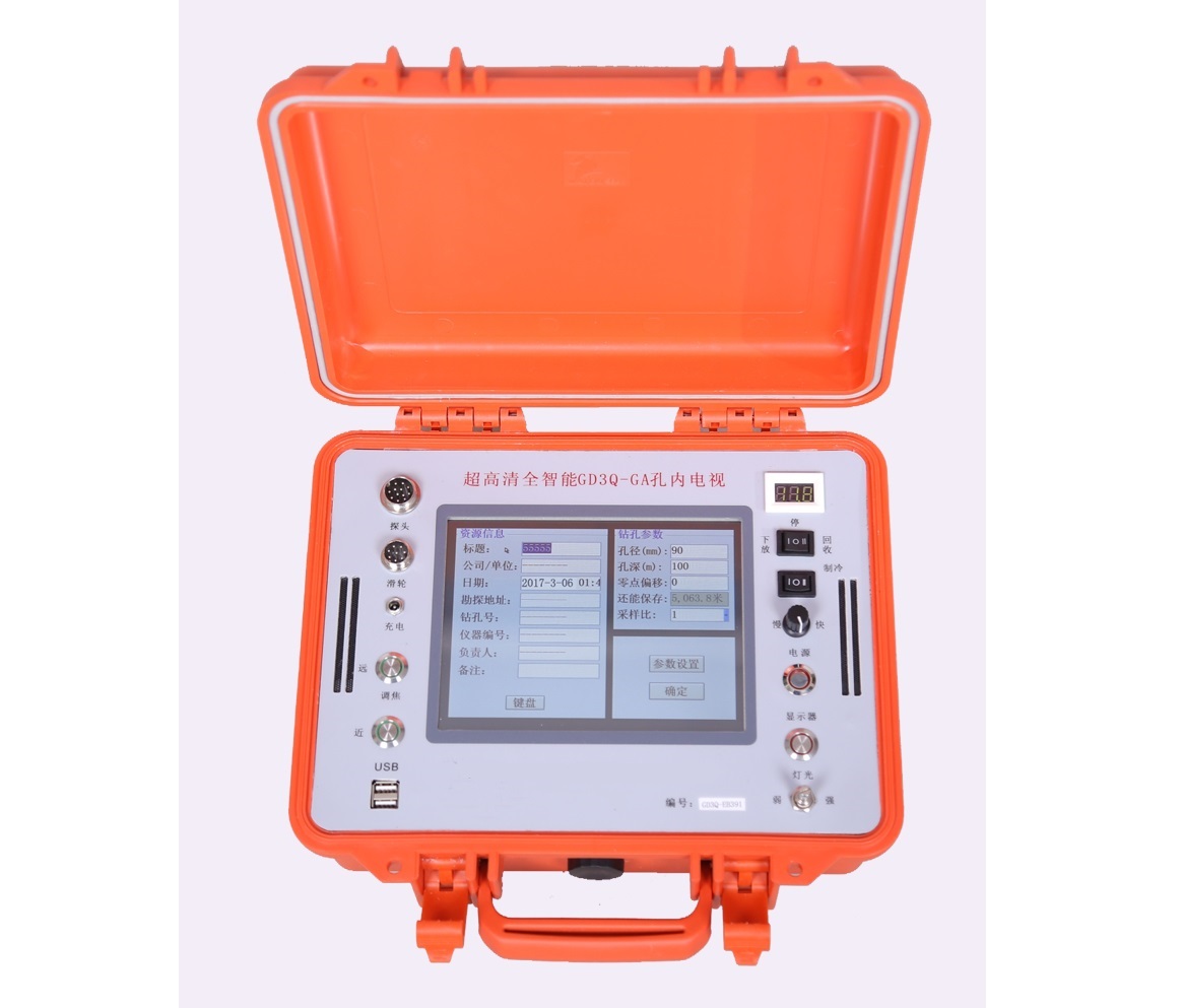 4D超高清全智能孔內(nèi)電視(GD3Q-GA型)采用先進的圖像采集與處理技術(shù),系統(tǒng)高度集成,內(nèi)存大。本系統(tǒng)的測試窗口為360°(全孔觀測),對所有的觀察物都能全方位,全柱面的觀測(垂直孔\水平孔\斜孔\俯、仰角孔)。并突破了以前的鉆孔電視在水平孔和斜孔中對有關(guān)地質(zhì)參數(shù)觀測定量難的這一技術(shù)難題。